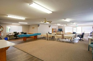 The complex has an age restriction of 55 plus, and you’re allowed one cat OR one dog to a size of 12 inches to the shoulder.